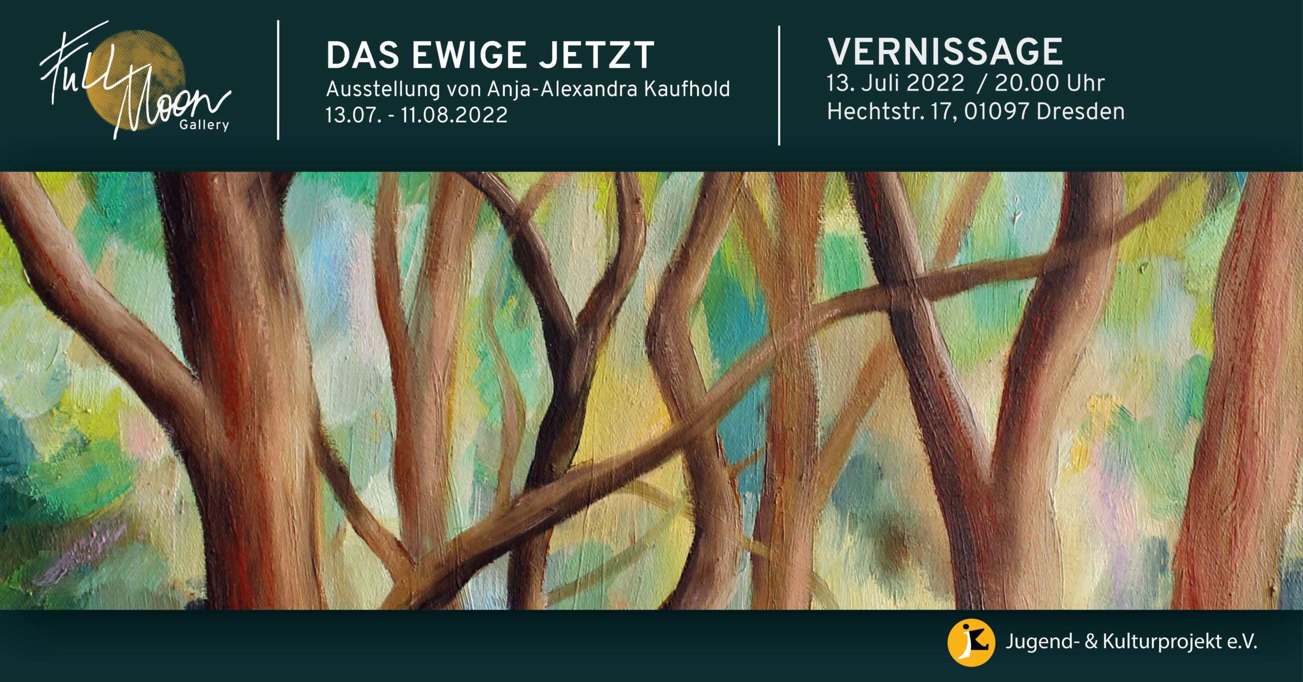 At the exhibition opening on 13 July in the Full Moon Gallery, the renowned Dresden artist Oskar Staudinger will speak and introduce the artist Anja-Alexandra Kaufhold and the topic of her exhibition. The vernissage will also be musically accompanied by the Dresden duo LunaLee, who combine diverse musical influences in a refreshing way. The duo’s playful, light improvisations with folk and blues influences will be underlaid with profound German lyrics full of everyday poetry.